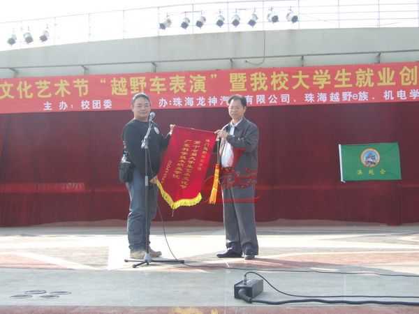 開幕式上龍神彭總發(fā)表慷慨激昂的講話,回顧了龍神公司與廣科院三年的良好合作,并表示將帶動所在行業(yè)和企業(yè)為大學(xué)生指引和提供更多的就業(yè)創(chuàng)業(yè)機會,共同發(fā)揚越野精神、建設(shè)汽車文化,使之成為華南地區(qū)甚至全國范圍的高職學(xué)生精神文明和文化建設(shè)的亮點。隨后宣布了大學(xué)生就業(yè)創(chuàng)業(yè)基地建設(shè)和澳門四驅(qū)會成立啟動儀式,龍神公司和澳門四驅(qū)會分別向廣科院贈送錦旗,多采多藝的大學(xué)生文藝匯演給會場增添了眩麗的色彩,在越野酷車展示中,車主們自信的介紹著自己的愛車,車模們也對車主的酷車贊嘆不已!交流會上,大學(xué)生們爭先恐后與越野車主們交淡著汽車改裝的心得,從中更加深入的了解四驅(qū)越野車的獨特改裝性能,在校園里到處都充斥著關(guān)于越野車改裝的氛圍。