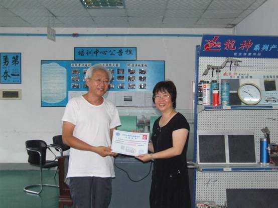 彭經(jīng)理頒發(fā)“汽車車身修復(fù)技能認證合格證書”