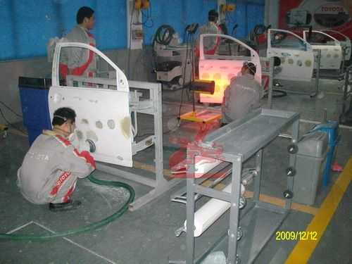 參觀汽車鈑噴實(shí)操現(xiàn)場(chǎng),了解龍神鈑噴設(shè)備使用情況