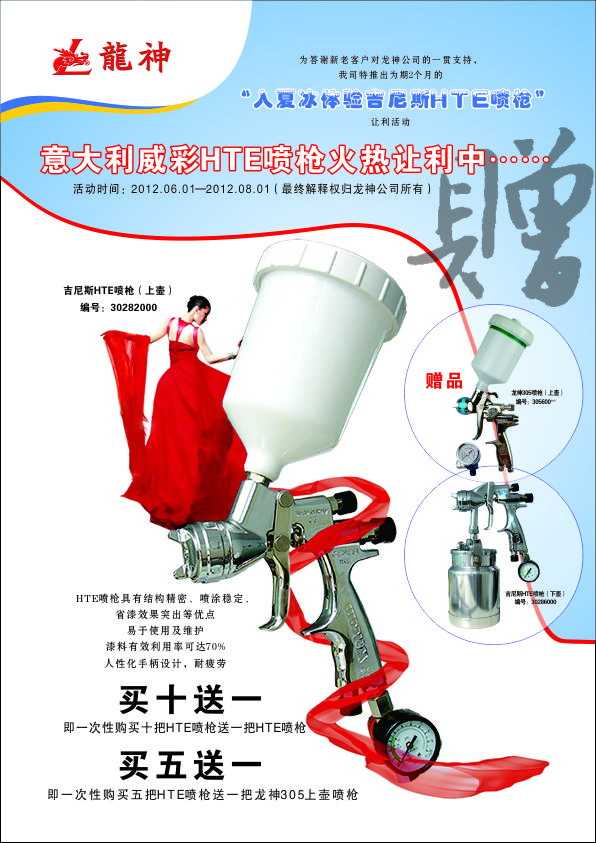 2、買五把HTE噴槍送一把龍神306噴槍(編號:3062001-002)