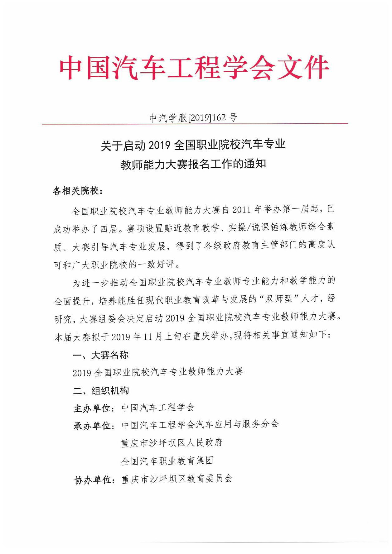2019全國職業(yè)院校汽車專業(yè)教師能力大賽-鈑金賽項報名進(jìn)行時 2019-09-12 7077 由中國汽車工程學(xué)會主辦,中國汽車工程學(xué)會汽車應(yīng)用與服務(wù)分會、重慶市沙坪壩區(qū)人民政府、全國汽車職業(yè)教育集團(tuán)承辦,珠海市龍神有限公司協(xié)辦的“2019年全國職業(yè)院校汽車專業(yè)教師能力大賽--鈑金維修賽項”報名工作開始了。。。