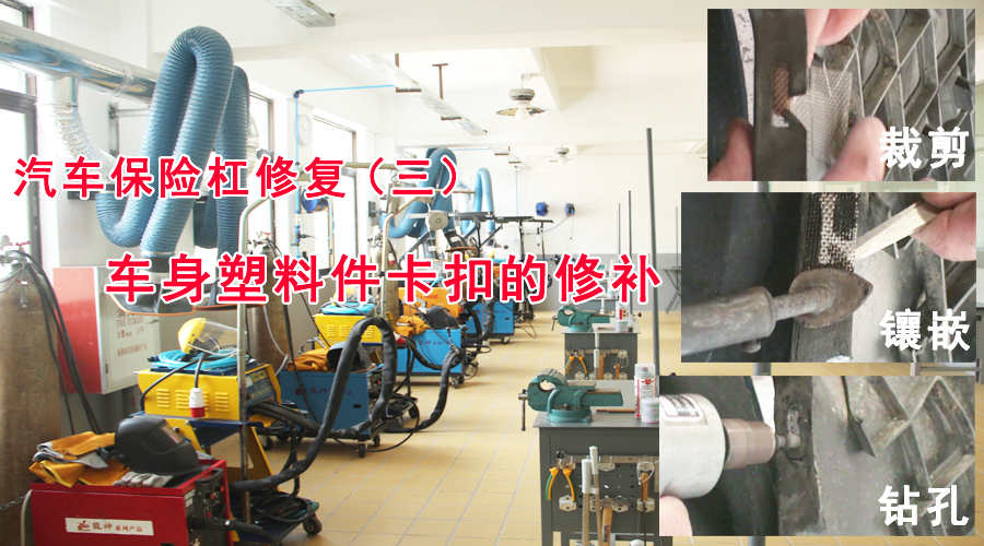 汽車保險(xiǎn)杠修復(fù)(一) 汽車保險(xiǎn)杠的裂縫修復(fù) 2014-11-20 38596 對(duì)于汽車保險(xiǎn)杠常見的邊緣開裂和破洞,可以使用無銹加固網(wǎng)焊接修復(fù)技術(shù)對(duì)其進(jìn)行快速高效的修復(fù),利用此方法修復(fù)后的保險(xiǎn)杠可以恢復(fù)原廠保險(xiǎn)杠約85%的性能,不會(huì)大幅降低保險(xiǎn)杠減震吸能的能力。塑料件的裂縫修復(fù)詳細(xì)步驟見下圖。(以下步驟中用到的工具:龍神電動(dòng)氣動(dòng)鉆、龍神打磨機(jī)、龍神修補(bǔ)網(wǎng)、修補(bǔ)膠條、電烙鐵)