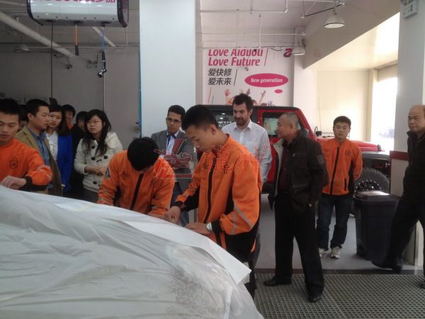 2013年特邀國外專家赴北京車爵士演示車縫泡膠條的使用 本司訊:2013年4月北京晴空萬里,龍神公司特邀英國專家一行五人,來到了北京車爵士進(jìn)行汽車噴涂遮蔽技術(shù)交流。首先公司一行了解車爵士的汽車噴涂情況及詢問了使用的遮蔽工具情況。隨后英國專家針對(duì)在汽車噴漆時(shí)難噴涂的車門縫隙、玻璃死角等地方的專業(yè)遮蔽工具的演示。車縫泡沫膠:用于車身所有縫隙的遮蔽,有效隔離及遮蔽漆霧噴入車縫里。 2013-04-08 12009