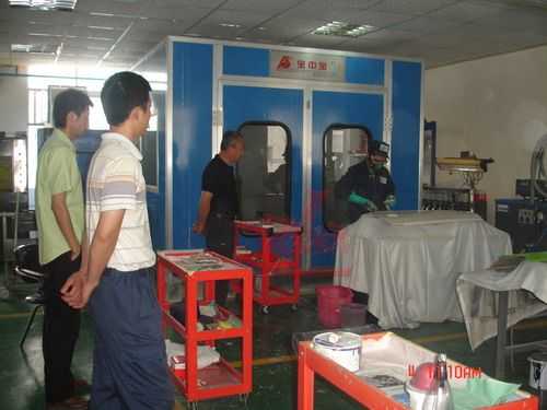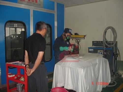 青島城陽職校參賽選手在龍神經(jīng)過一個月緊張有序的賽前強(qiáng)化培訓(xùn)后,彭總親臨現(xiàn)場了解他們賽前培訓(xùn)情況,選手們訓(xùn)練有素,各種工具準(zhǔn)備、動手操作一氣呵成,噴槍、鈑金快修、干磨系統(tǒng)的使用,樣樣工具設(shè)備用起來得心應(yīng)手,表現(xiàn)出選手們扎實(shí)的基本功,熟練的鈑噴操作程序讓彭總贊嘆他們訓(xùn)練的成果,選手們對參加全國競賽信心倍增.