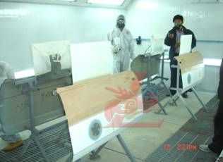 工具設(shè)備: 烤漆房、防靜電噴漆軟管、溶劑回收機、紅外線烤燈、底漆噴槍、面漆噴槍 多角度工件架、上壺噴槍架 耗材及勞保:標(biāo)準(zhǔn)粘塵布、藍孔除油布、吹塵槍、噴漆防護服