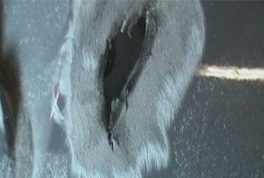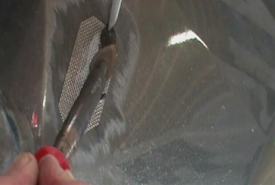 步驟7:對熔植的無銹加固網(wǎng)周圍進行簡單的打磨,以增強其表面的附著力,便于后續(xù)進行玻纖膠條覆蓋的操作,如圖1-7所示。