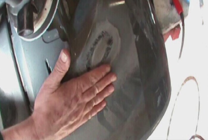 步驟10:使用打磨機對修補面進行打磨使其平滑,如圖1-10所示。