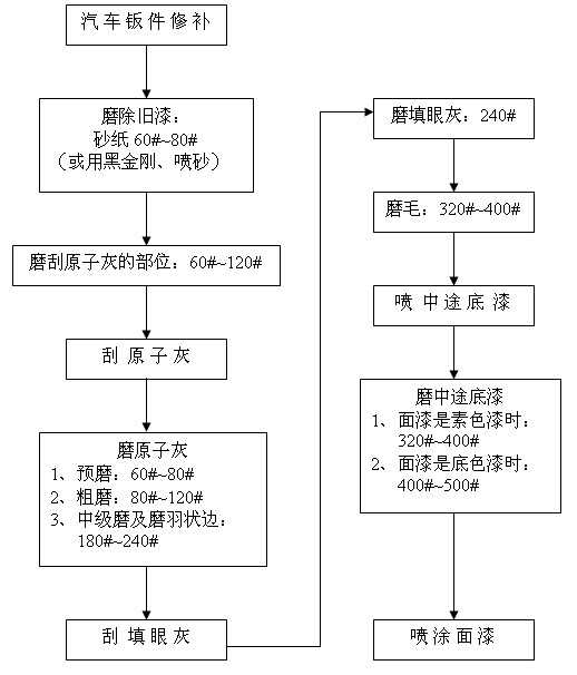 汽車修補(bǔ)干磨程序及砂紙的選擇 備注: 1、除舊漆時(shí)采用黑金剛配除漆除銹機(jī)能夠快速地除去平面、狹縫及凹凸不平表面的舊漆與銹漬;采用噴砂槍噴砂還可以很快地去除某些孔隙、縫隙或手都很難伸進(jìn)去的部位的舊漆與銹斑; 2、在磨填眼灰、中途底漆和尤其有邊角位、弧度位的表面時(shí)配打磨緩沖墊(置于圓盤砂紙和托盤之間)能夠使打磨作業(yè)更加順暢,并能獲得規(guī)則的表面質(zhì)量。 2007-08-25 12212