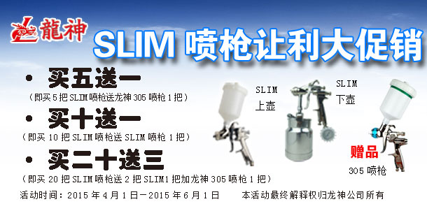 2013年10月至12月SLIM噴槍促銷方案 2013-10-12 11526 SLIM噴槍讓利大促銷,起始時(shí)間:2013年10月14日至2013年12月14日,時(shí)長(zhǎng):二個(gè)月。